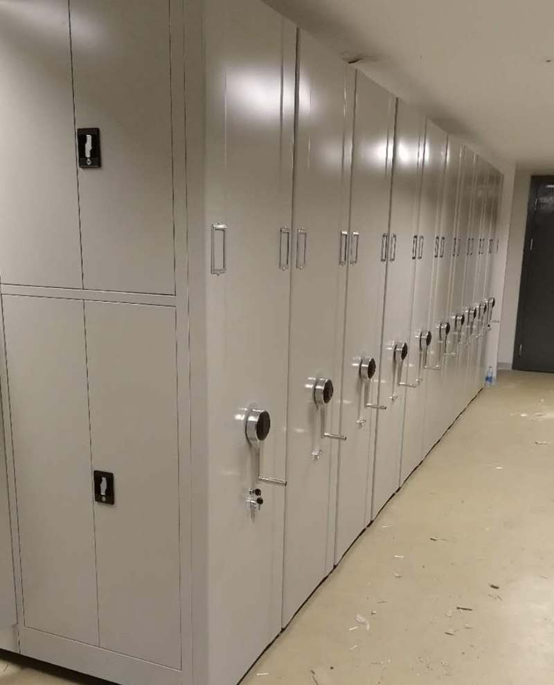 密集架合閉后,可達防盜、防光、防高溫、防火、防潮、防塵、防鼠、防蟲